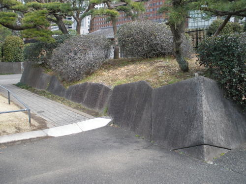 The stone wall of the gate of Babasaki moat side, viewed from a distance.